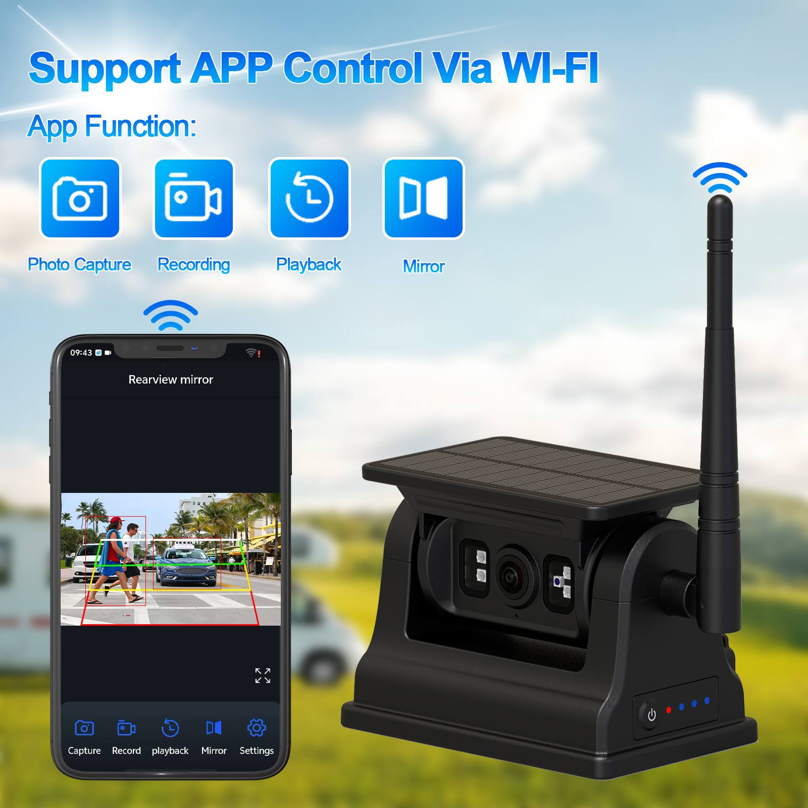 Màn hình xe 9 inch IPS 2AV AHD Hỗ trợ đa phương tiện CarPlaytrưởng xe Camera WIFI đảo chiều có thể sạc lại bằng năng lượng mặt trời phát hiện AI có đế từ tính, không cần nối dây, lắp đặt dễ dàng với đế từ, camera lùi không dây chạy bằng năng lượng mặt trời tích hợp pin sạc dung lượng lớn 10500mAh và có chức năng nhìn đêm, cũng có thể sử dụng năng lượng mặt trời, tiết kiệm năng lượng và bảo vệ môi trường. Camera hỗ trợ chức năng phát hiện AI, cũng có thể phát hiện người đi bộ và phương tiệnhỗ trợ kết nối với điện thoại di động qua WIFI, cho phép người dùng chụp ảnh, quay video và phát lại, đồng thời điều chỉnh hiệu chỉnh AI, v.v. Camera này là lựa chọn tốt nhất cho thiết bị giám sát an ninh phương tiện để lái xe của bạn an toàn.
