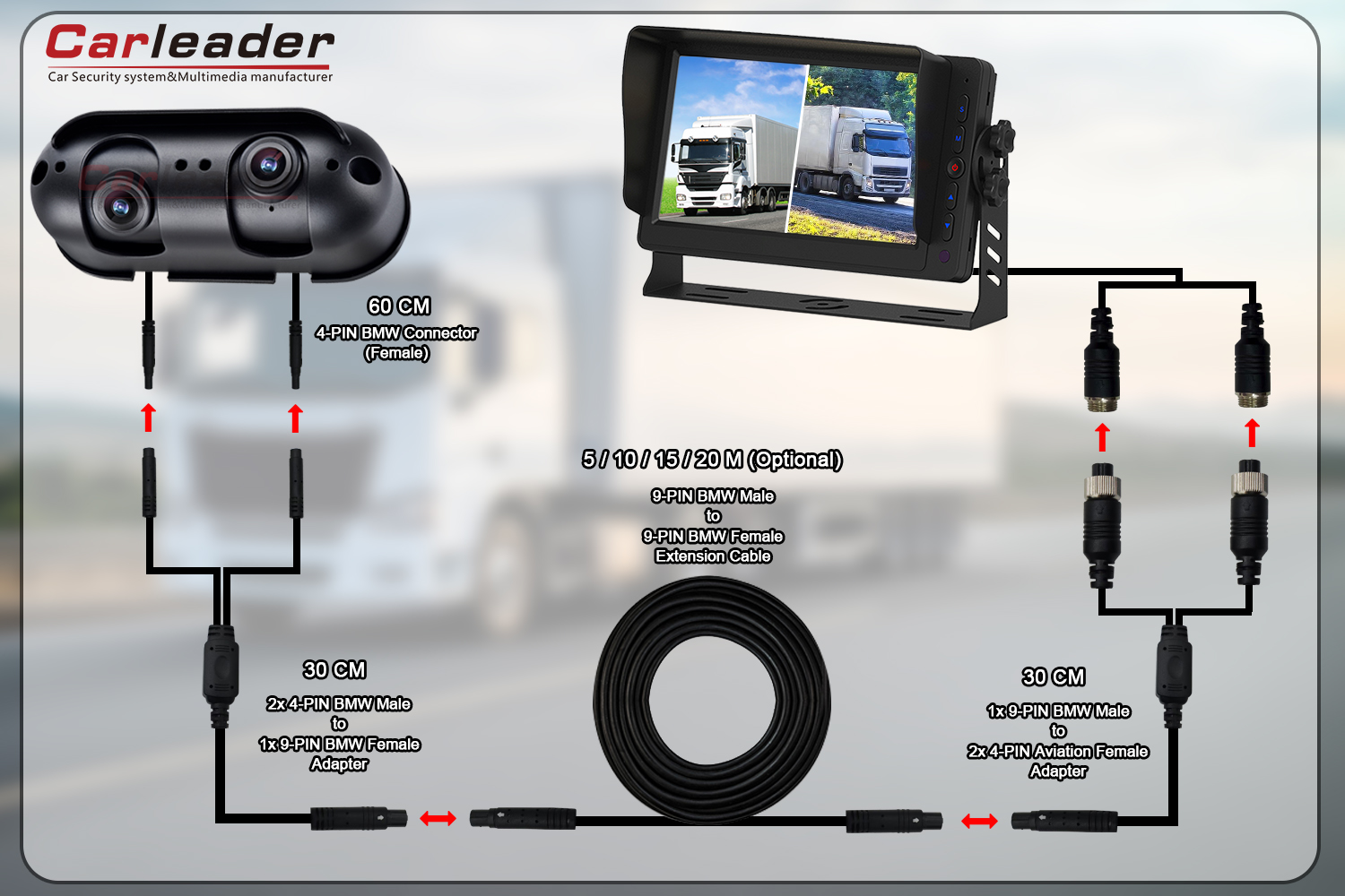 Carleadersẽ cung cấp hai giải pháp nối dây khác nhau cho ống kính kép chống nước Starlight HD Camera phía sau hạng nặng, để phù hợp với nhu cầu hệ thống dây điện khác nhau: