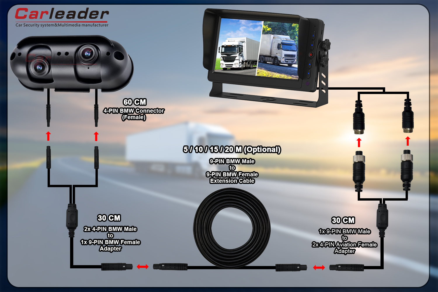 trưởng xesẽ cung cấp hai giải pháp nối dây khác nhau cho Camera đảo chiều hạng nặng ống kính kép Starlight AHD, để phù hợp với các nhu cầu nối dây khác nhau: