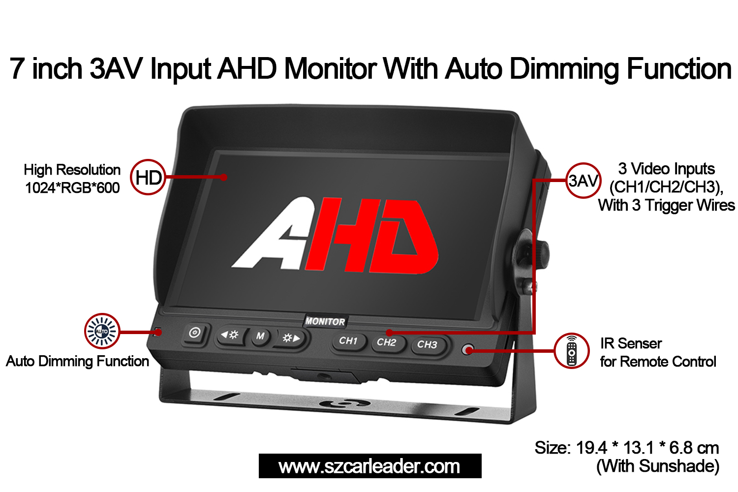 Hoàn hảo cho việc quản lý đội xe, giám sát an ninh hoặc sử dụng trong công nghiệp, CarleaderMàn hình dự phòng xe 7 inch 3CH AHDkết hợp độ tin cậy, tính linh hoạt và sự đổi mới lấy người dùng làm trung tâm trong một hình thức nhỏ gọn.
