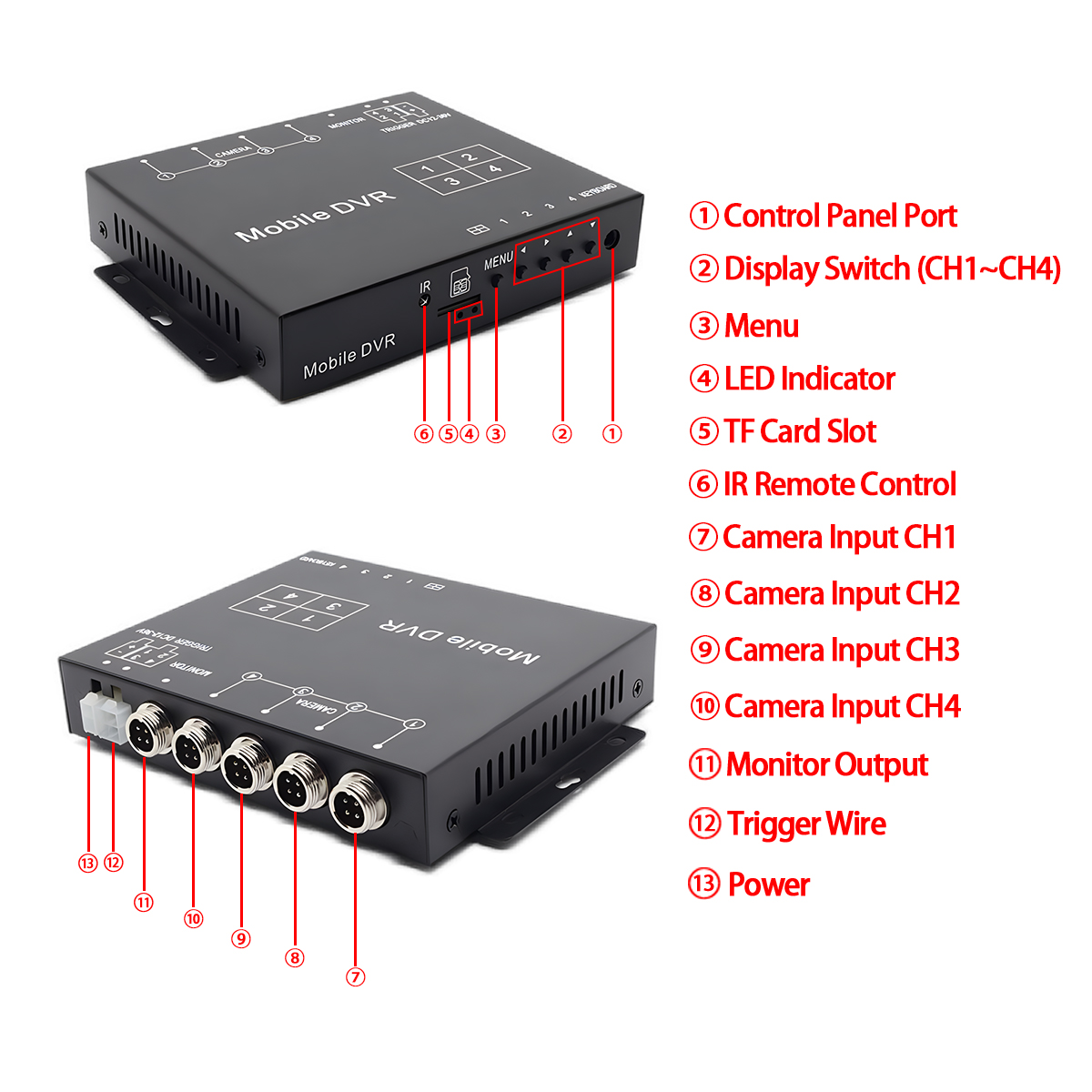 Hộp chia bốn này lý tưởng cho Xe tải & Đội xe Thương mại, Xe buýt & Xe khách, Xe khẩn cấp & An ninh, Thiết bị xây dựng và hạng nặng, bất kỳ phương tiện nào khác yêu cầu chức năng ghi và hiển thị nhiều camera