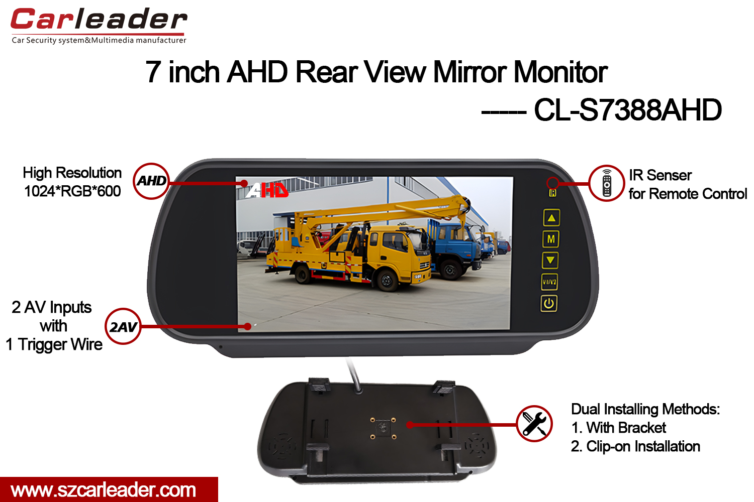 trưởng xeMàn hình AHD gương chiếu hậu LCD TFT 7 inchlà màn hình AHD gương ô tô 7 inch hiệu suất cao được thiết kế để mang lại độ rõ nét và tính linh hoạt đặc biệt cho các hệ thống giám sát xe hiện đại. Kết hợp các tính năng tiên tiến với thiết kế thân thiện với người dùng, màn hình này đảm bảo hiệu suất đáng tin cậy trong các điều kiện lái xe đa dạng.
